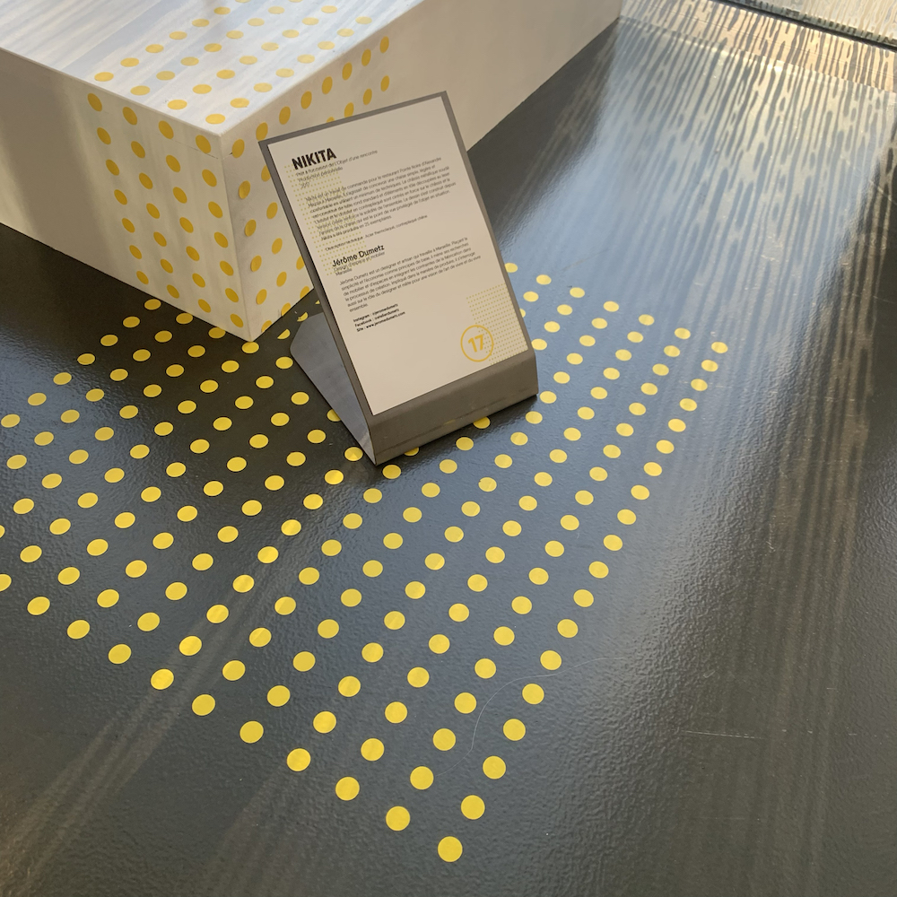 Toutes les découpes jaune et bleu sont réalisées en vinyle monomère à l’aide d’un plotter. Au total, c’est plus de 80m de vinyle qui ont été découpés, échenillés et tapés.