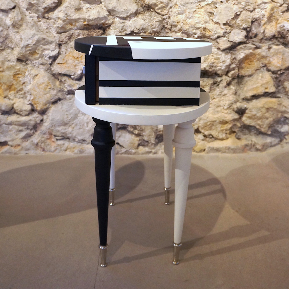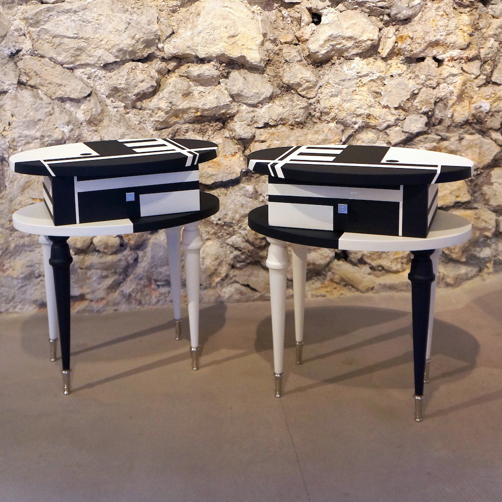 Cette fois ci, notre client souhaitait remplacer des bouts de canapé trop sombres. Nous avons donc chiné ces 2 chevets qui possédaient une base solide mais un look un peu vieillot !