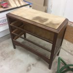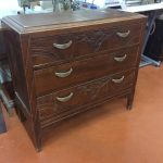 Une commode de style art deco qu’on a chiné pour un de nos clients. La couleur souhaitée était un bleu lumineux, la commode étant la pièce maitresse de la pièce. Pour éviter les mauvaises surprises, un traitement xylophène a été appliqué avant le ponçage. La peinture a été appliquée au pistolet sur une sous-couche et les poignées, très encrassées, ont été nettoyées dans un bain à ultrasons.
