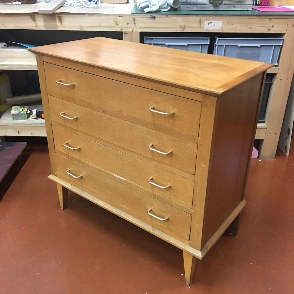 On chine ce meuble pour une commande de réédition de notre commode « Métropolis », la structure est saine mais tout reste à faire…
